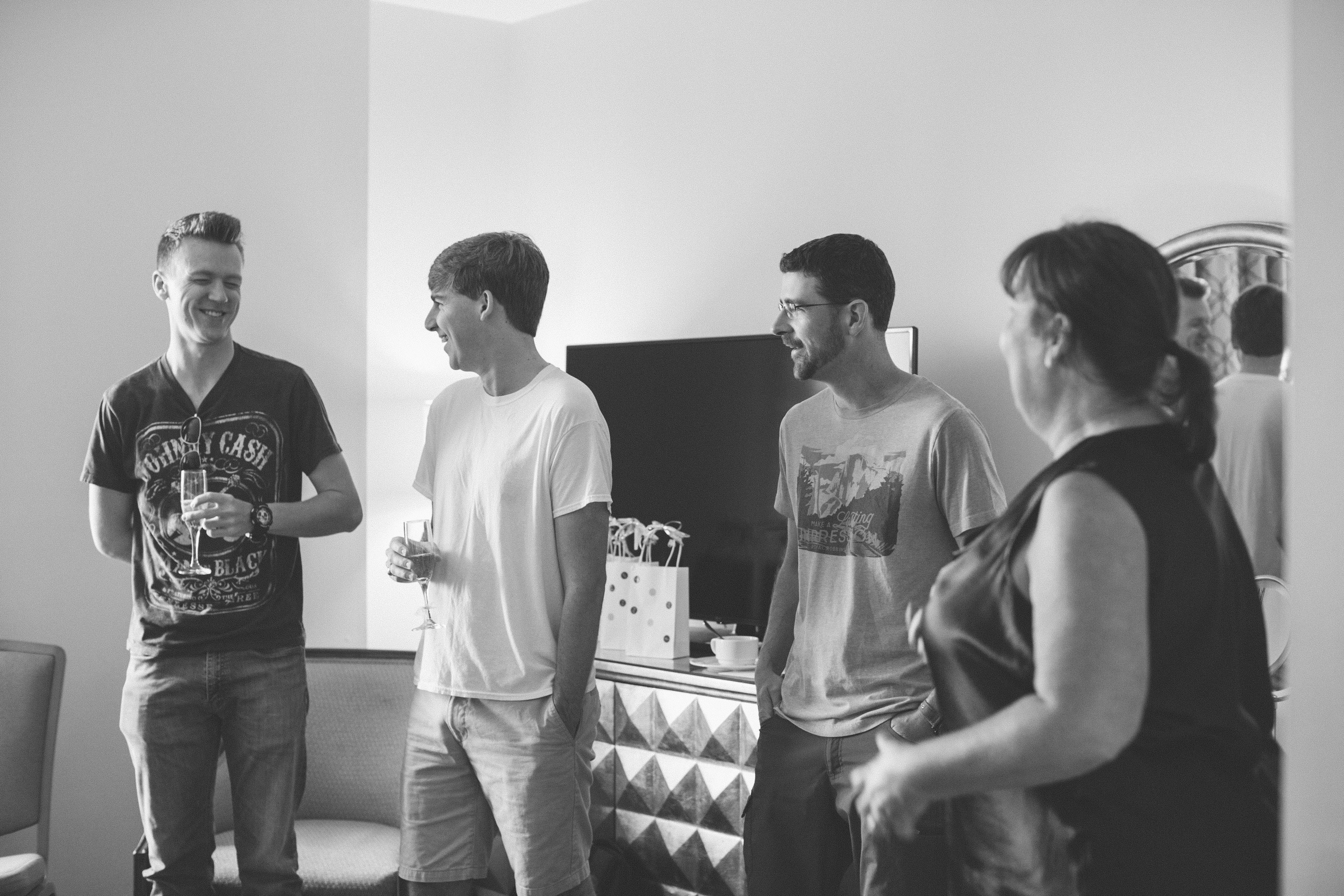 The morning of, the bridesmaids got ready at the Cathedral, while the groomsmen got ready at the Francis Marion Hotel. Everyone was joyful, relaxed, and exuberant. It was a peaceful morning leading into a celebratory afternoon.