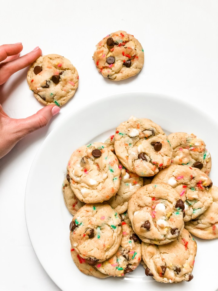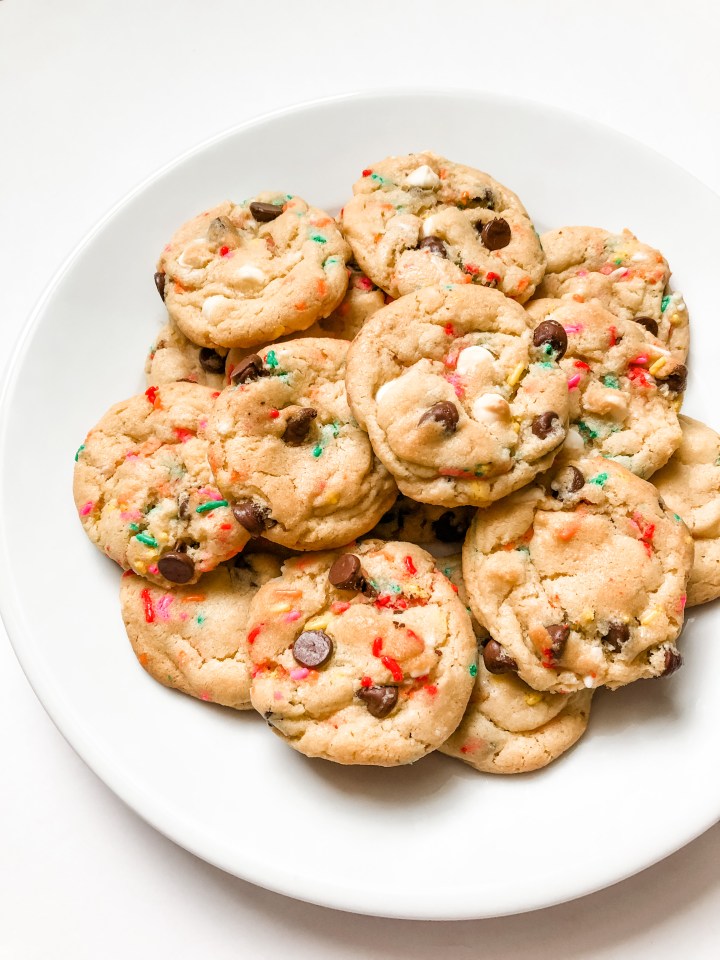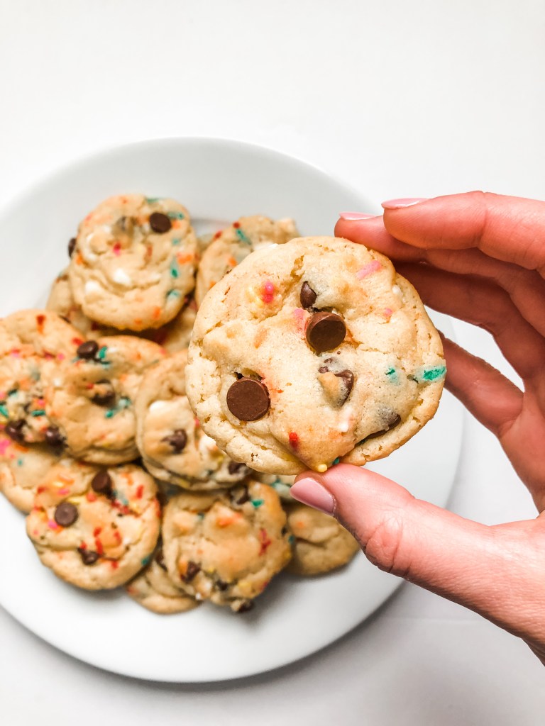They’re soft on the inside and chewy on the outside. The cake mix is absolutely necessary to this recipe, because it completely changes the texture of the cookie. And the sprinkles make this cookie totally adaptable to whatever occasion you are making these for. I love using the rainbow sprinkles, but whether you’re making them for Valentine’s Day, St. Patrick’s Day, or a Birthday Party, you can switch up the colors and textures for some added fun.