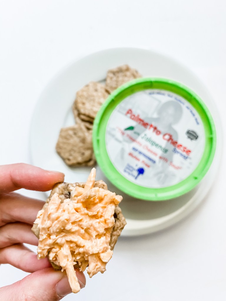 I wish I made my own pimento cheese. My great grandfather would probably be ashamed that I don’t, given the fact that his recipe is the pride of the Price family. However, when Palmetto Cheese is made just down the road from you on Pawleys Island, I choose to support local and leave the pimento cheese making to the experts. With a side of crackers and some veggies, this southern lunch is complete!