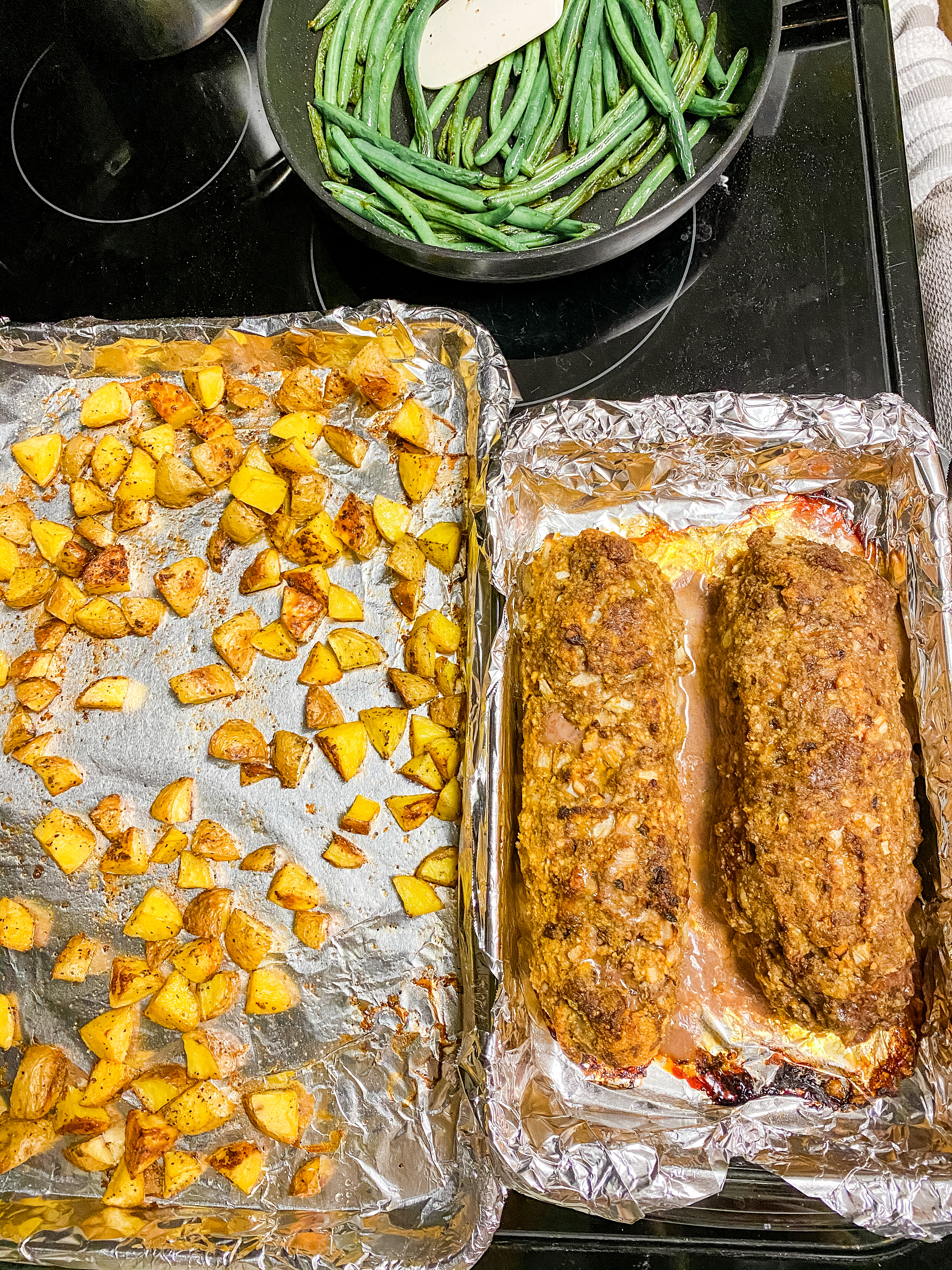 1. Preheat oven to 350 degrees. Prepare a baking dish with aluminum foil and spray with non-stick cooking spray for easy cleanup. Or use two bread pans prepped with non-stick cooking spray. (I like my meatloaf to have more of a crispy crust on it, so I prefer the baking dish cooking method, but do whatever you prefer!)
