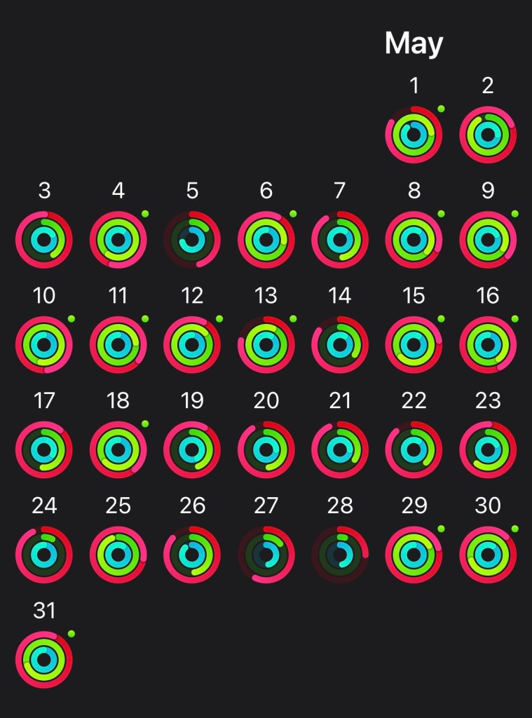 This month, I exercised 15 out of 31 days. It was a variety of outdoor walks and Beachbody workouts (Muscle Burns Fat, Yoga, & 21 Day Fix). This month, my goal is to have more exercise days on the days that I’m working. It’s been a constant struggle for me to exercise on the days that I’m working. I don’t know if anyone else who works 12s feels the same way, but I am trying to not let it be a barrier to me celebrating my body with movement. So in June, I’m hoping to be more intentional to exercise not because I have to because I WANT to.